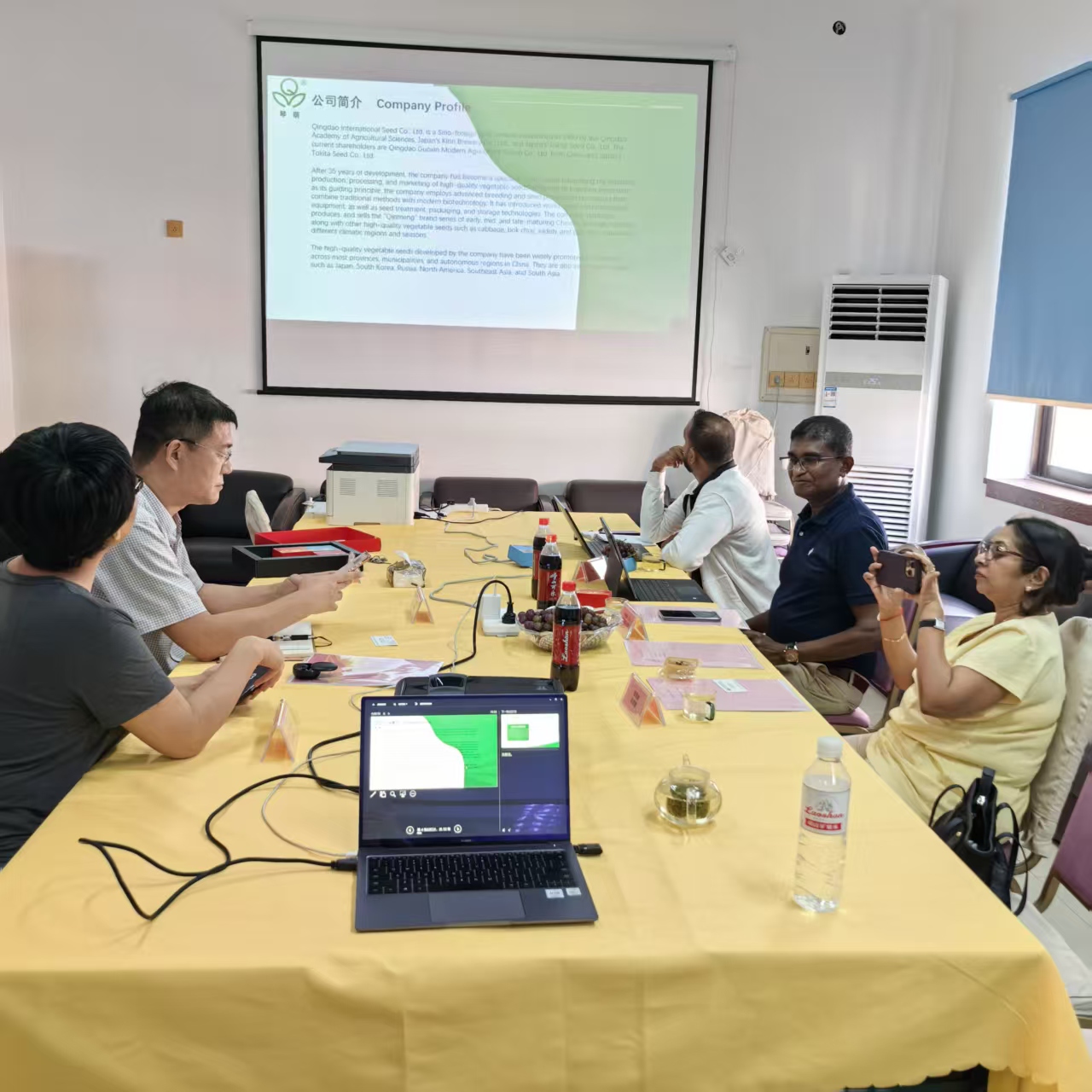 在公司會議室,我方通過專業的PPT演示,全面介紹了公司的發展歷程、研發實力、核心產品線以及質量控制體系。客戶對我公司的甘藍、西藍花表現出濃厚的興趣。